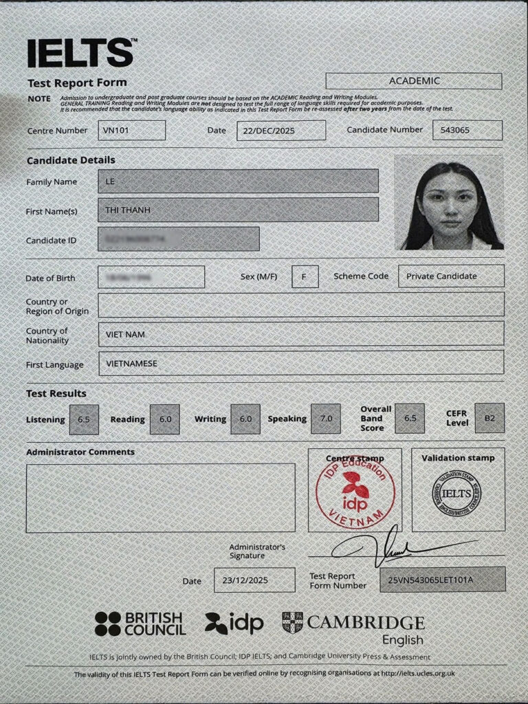 Từ những bước đi chập chững trên hành trình quay lại với việc học ngôn ngữ, sau hơn một năm nỗ lực không ngừng, Ms. Thanh đã đạt được kết quả đáng tự hào. Đây là minh chứng rõ ràng cho sự bền bỉ, bản lĩnh và quá trình chuyển mình tích cực trong hành trình chinh phục tri thức.