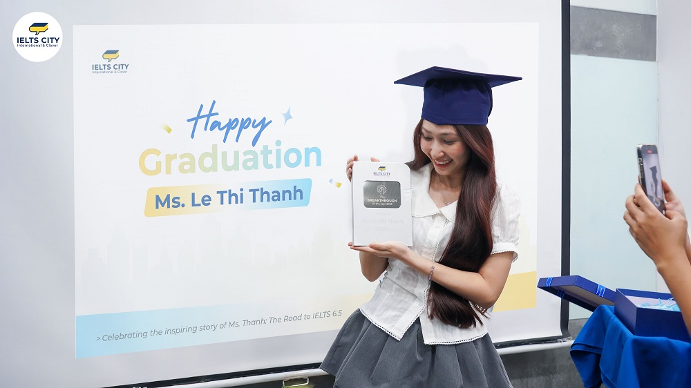 Vừa qua, IELTS CITY đã long trọng tổ chức Lễ tốt nghiệp và vinh danh học viên Lê Thị Thanh (KOL Thanh Mèo) – ghi dấu cột mốc hoàn thành khóa học IELTS 6.5 và xuất sắc chinh phục 6.5 IELTS Overall ngay trong lần thi đầu tiên.