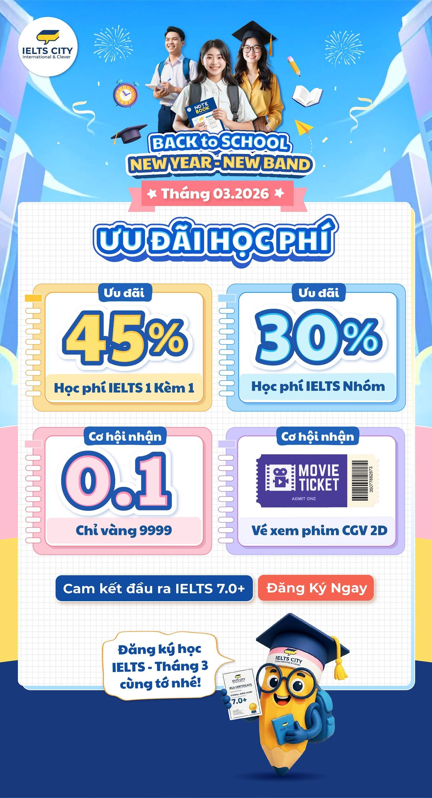 - Tặng 100% lệ phí thi IELTS