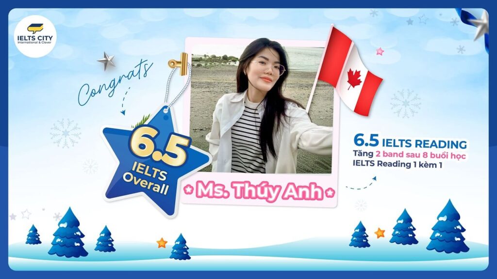 Với sự đồng hành sát sao giữa giáo viên và học viên, Thúy Anh từng bước tháo gỡ những khó khăn trong Reading, tự tin hơn khi làm bài và đạt 6.5 IELTS Reading, tăng 2 band, sẵn sàng cho mục tiêu tiếp theo trên hành trình học tập và làm việc tại Canada.